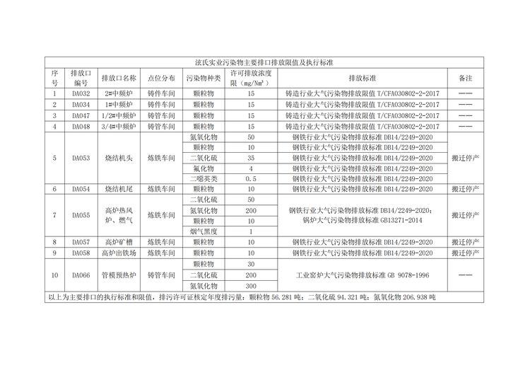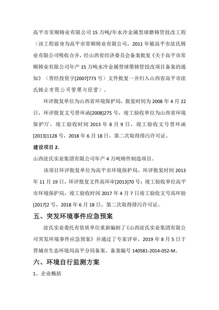 山西泫氏實業集團有限公司 環保信息公示資料